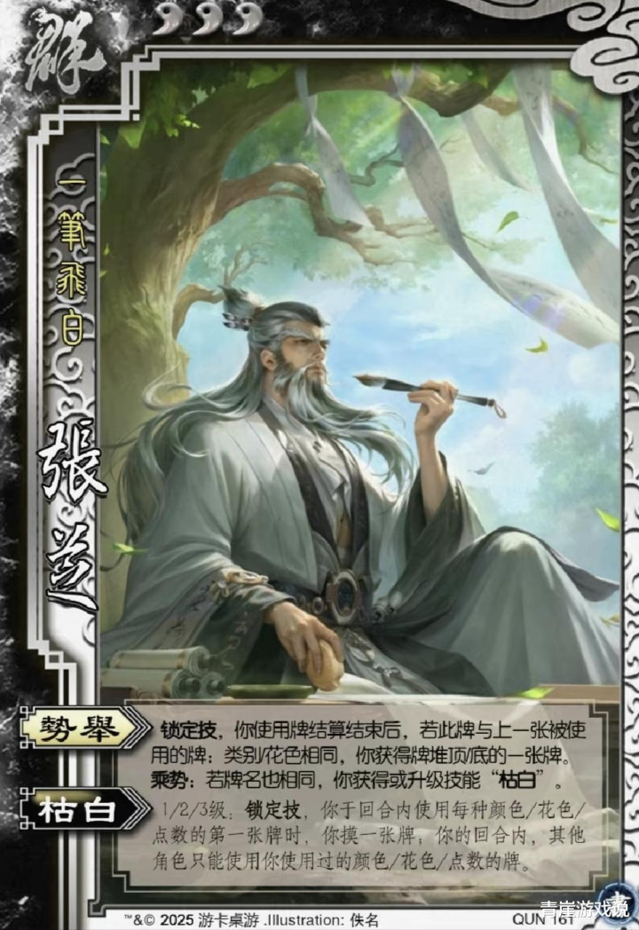 书的代表性人物是张芝,是东汉时期著名书法家。张芝【势举】具有不错的摸牌能力,而【枯白】更是让他一举晋升阴间武将。张芝已经开通武将测试,强度不容小觑,他绝对是阴间武将里的一员!