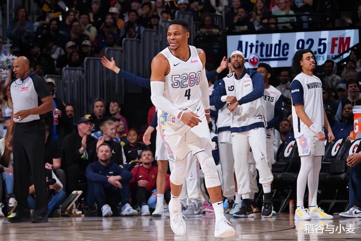 在上赛季的NBA常规赛中,威少在82场比赛中总共代表所在的丹佛掘金出场75次,场均出场时间达到了27.9分钟,场均数据为13.3分4.9篮板6.1助攻1.4抢断0.5盖帽,还有3.2次失误和2.5次犯规,投篮命中率44.9%,三分命中率32.3%,罚球命中率66.1%。到了季后赛,威少总共出场14次,场均出场时间达到了24.1分钟,场均数据为11.7分3.7篮板2.6助攻0.9抢断0.1盖帽,还有2.3次失误和3.2次犯规,投篮命中率39.1%,三分命中率31.7%,罚球命中率70%。