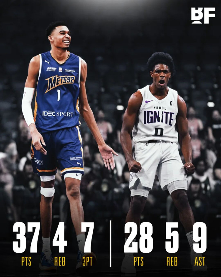 真不是夸张,2022年一场备受关注的友谊赛,法国联赛大都会92队对阵点燃队,文班亚马轰下37分4篮板5盖帽7记三分,亨德森则得到28分5篮板9助攻2抢断。