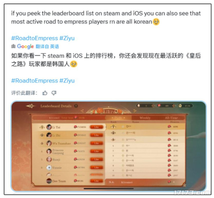 如果说欧美玩家在理解宫斗,韩国玩家就是在参与宫斗。