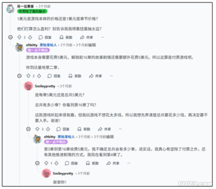 结果发现,游戏本体1美元,解锁全部章节仅需5美元,用白菜价买到服化道精良、堪比3A剧情演出的体验,让他们直呼超值。