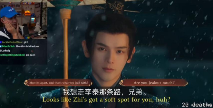 Ludwig不止会调动气氛和搞笑,还展现出了一份难得的文化悟性,不仅发挥语言天赋动脑子玩,剧情理解也快,还总操心游戏里的太子该好好读书。