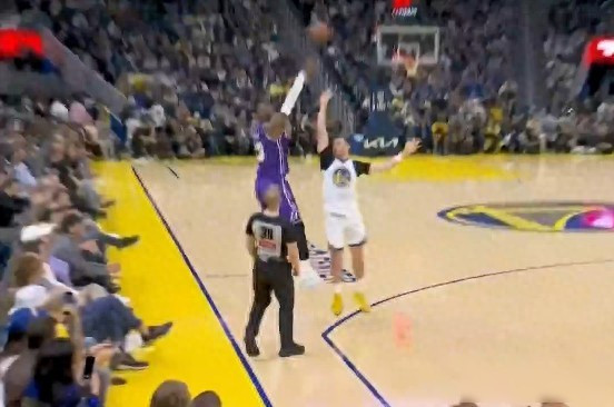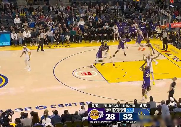 4月10号湖人打勇士那场球,第二节詹姆斯被追梦和库明加两个人包夹,他转身后仰投进一记三分,这球没有掩护也没传球,全靠他自己硬拔出手,上半场詹姆斯三分三投全中,投篮八次进了六个,一共拿了15分,视频一发出来,朋友圈都在转发。
